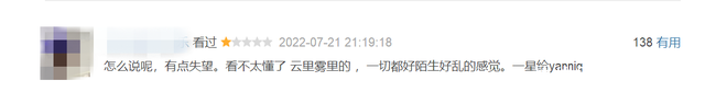 不过也有网友表示怎么说呢,有点失望。看不太懂了 云里雾里的 ,一切都好陌生好乱的感觉。