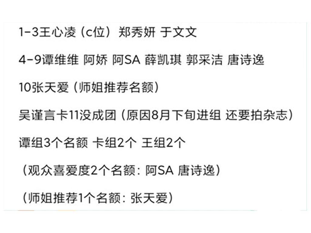 用当下流行的说法,称之为“意难平”,就是为某一位姐姐未能成团而感到惋惜。个人认为这种心情是可以理解的,毕竟每个人的审美不同,所以心目中的成团名单也不尽相同。